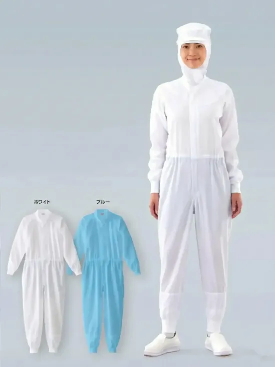 ・超高通気性快適素材を採用し、暑い作業現場でも涼しさを確保・通気度100cc以上で衣服内のムレを軽減・優れた吸汗性と速乾性により快適な着用感を持続・上下一体型で隙間がなく、クリーン性を重視した設計・淡色でも安心して着用できる透け防止仕様