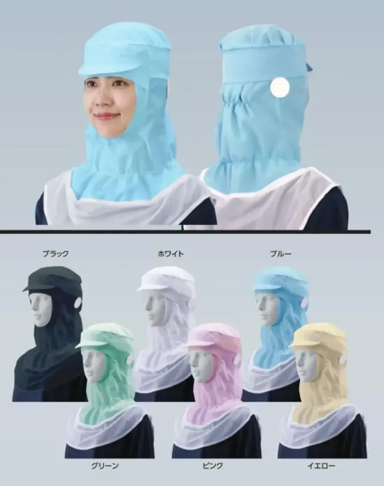 ・超高通気性快適素材エアベルを使用し、暑い現場でも快適・通気度100cc以上で気になるムレ感を軽減・かぶるだけで簡単に正しく着用できるかぶりタイプ設計・頭部形状に沿う独自のヘアーバンド形状で、調整ベルトなしでもズレにくい・美額フライスを二重使いし、毛髪の突き出し防止と高いフィット感を両立・頭部保護具が収まる設計(Sサイズは非対応)で作業性に配慮・メガネホルダー付きで隙間からの毛髪落下を軽減・マスクホルダー合皮仕様で耳への負担を軽減・膨らんだ形状の長髪対応設計でまとめた毛髪をしっかり収納・首元ゴム仕様で広がりが抑えられ、上着の衿にキレイに収まる・6色展開で作業環境や用途に合わせて選択可能