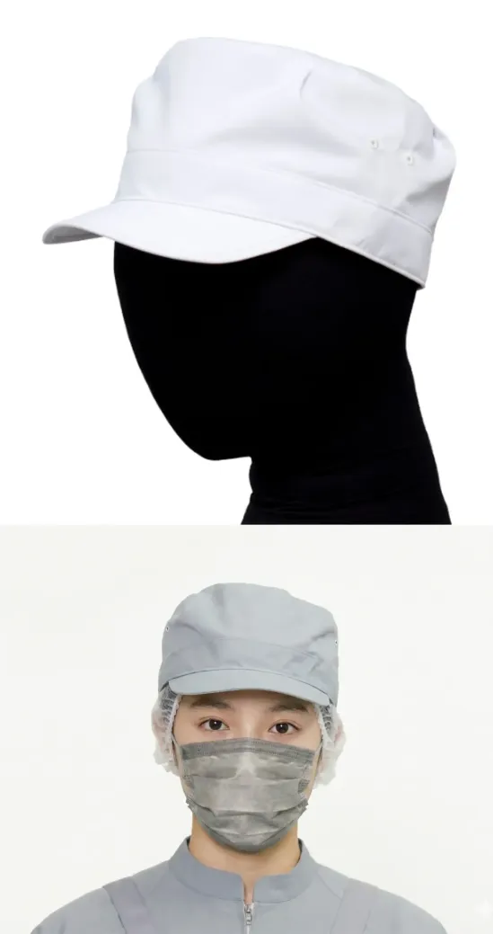衛生白衣のカラー展開コート・パンツと一緒に合わせる衛生ワークキャップです。工場から接客まで幅広く着用できることでサービスの巾が大きく広がります。少しのストレッチ、リサイクルポリエステル糸を一部使用し、制電糸、抗菌防臭、速乾機能はそのまま、裏側は点接触ですのでさらっと着こなせます。軽さもあり快適です。工業洗濯でも扱いやすくいつでも清潔に商品を保つことができます。