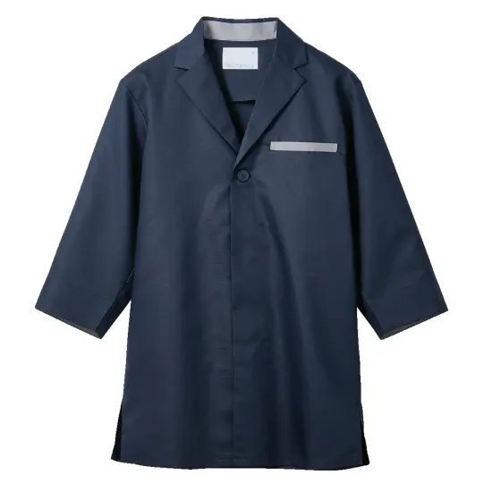 胸ポケットが目を引く軽量コート。厨房の暑さや悩みに特化したアゼック®クール素材を採用し吸汗速乾性と防汚性を両立。シャツとの重ね着でも蒸れにくく、厨房作業の快適を支えます。