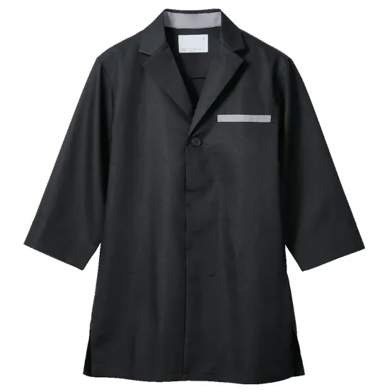 胸ポケットが目を引く軽量コート。厨房の暑さや悩みに特化したアゼック®クール素材を採用し吸汗速乾性と防汚性を両立。シャツとの重ね着でも蒸れにくく、厨房作業の快適を支えます。